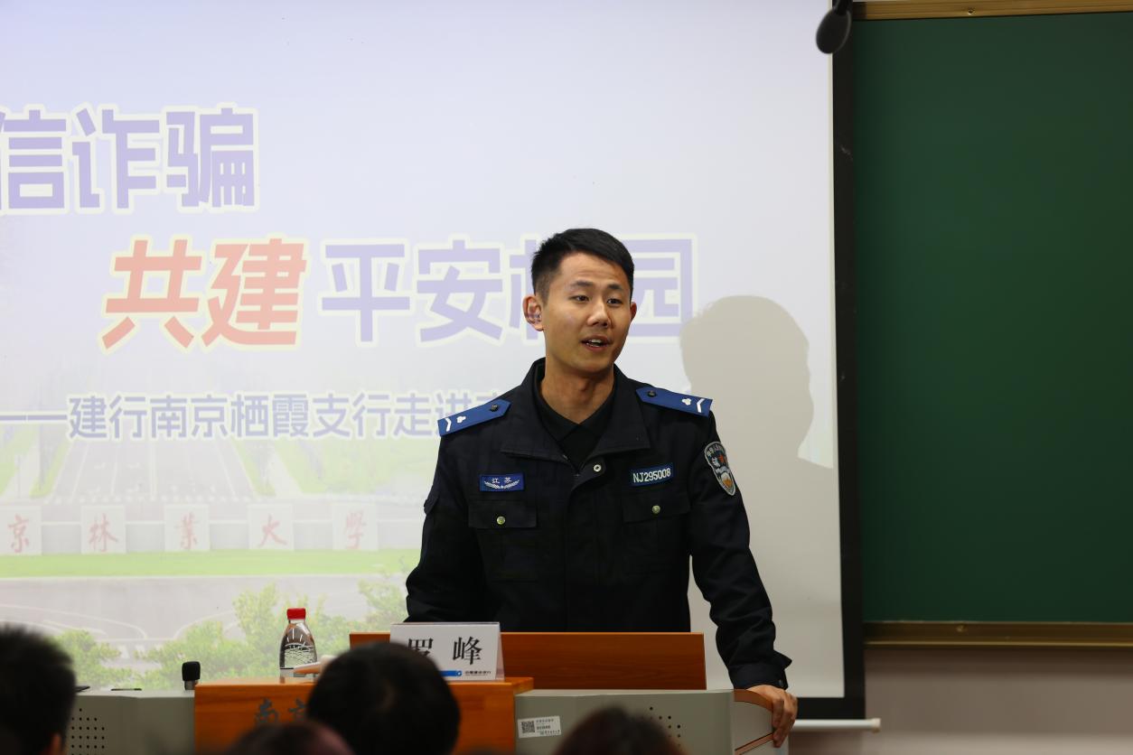 10月24日上午,校财务处、白马校区、建设银行南京栖霞支行联合为校区2025级新生开展反电信网络诈骗宣传讲座。本次活动特邀南京市公安局溧水分局警官罗峰担任主讲人,旨在提升在校大学生的防范意识和识别能力,筑牢校园安全防线。
