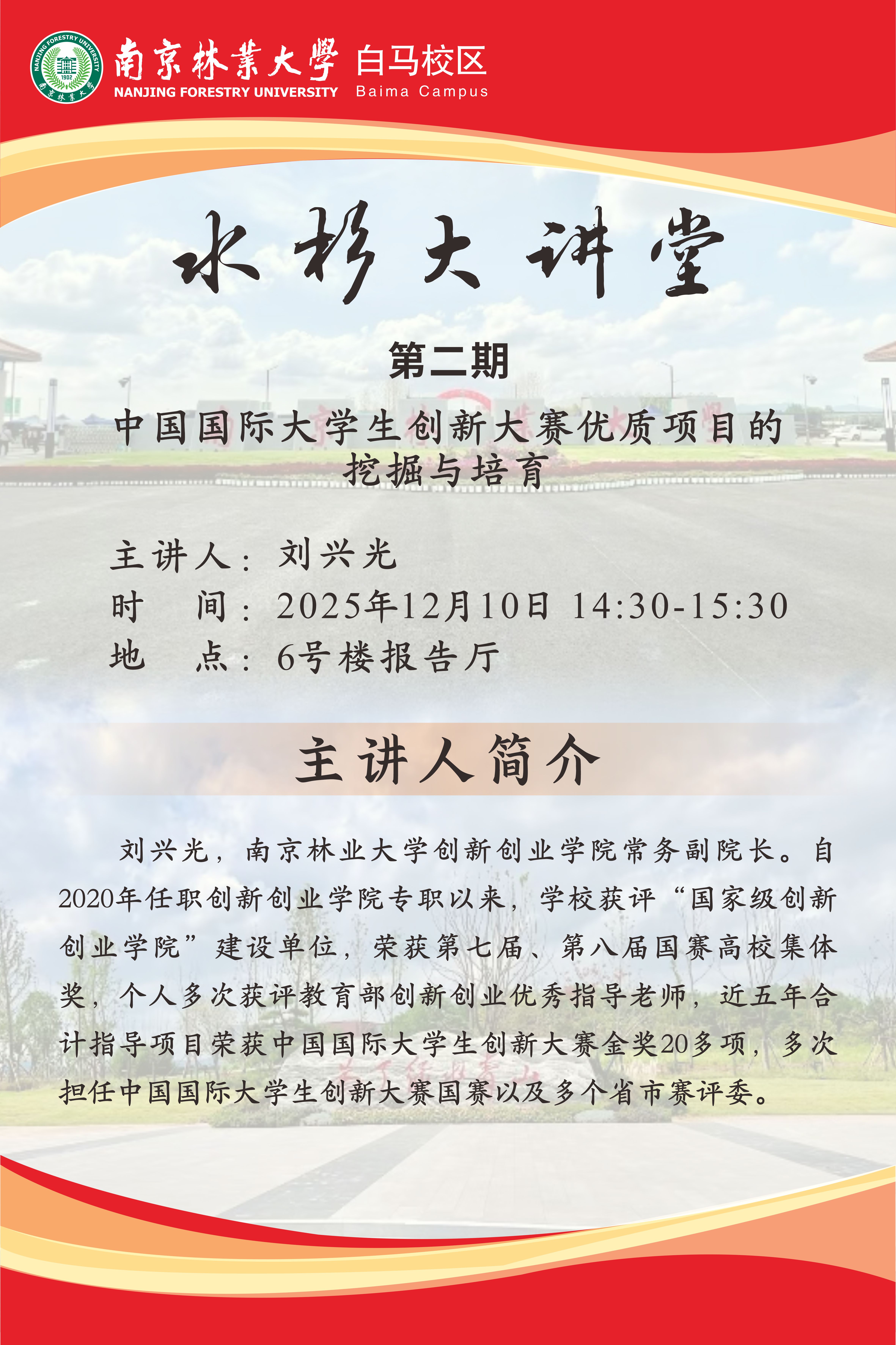 活动预告 | 水杉大讲堂(第二期)中国国际大学生创新大赛优质项目的挖掘与培育
