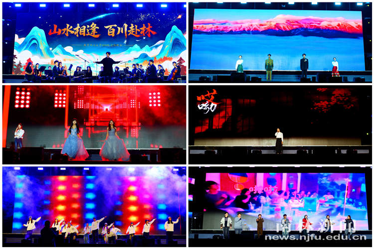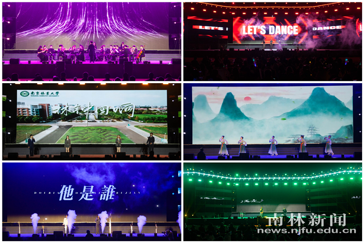 晚会共分为“薪火相传”“艺彩纷呈”“声动南林”“逐梦启航”四个篇章,融入青春接力与多元舞台效果。其中,水杉爵士舞队带来的《Paradise》以肢体语言点燃全场热情;南京林业大学合唱团演奏的《一想到你呀》轻柔旋律里藏着校园温情;白马校区新生张谨谦演绎的《鸳鸯戏》,以吴侬软语唱响江南水乡的温婉;《千年》《九号街区》舞蹈展现了南林学子“动静皆宜”的多元风采;淮安校区学生带来的《逐梦职场T台》在鸣响未来职场号角的同时,晕染传统文化的绵长诗行;水杉交响乐团演奏的《肖斯塔科维奇第二圆舞曲》则以泉淌般的乐声奏响“山水相逢”的南林故事;《林钟回响》以悠扬歌声诚邀南林学子共赴绿水青山盟约;礼韵主持团的《礼赞·青春》以铿锵声线讲述新青年成长独白的故事;白马校区新生张羽茜、邱竹凡合唱的《不为谁而作的歌》,传递温暖坚定的力量;李怡然等新生带来的《Let's Dance》以炫丽舞姿彰显青春光芒;EST音乐社的《new E.S.T.歌曲串烧》将晚会推向高潮,三首风格迥异的歌曲串联起对个性的诠释和对生命的礼赞。最后,在舞蹈节目《待到春和景明时》的旋律中,共同见证“青绿·青葱·青春”的生命力量,晚会圆满落下帷幕。