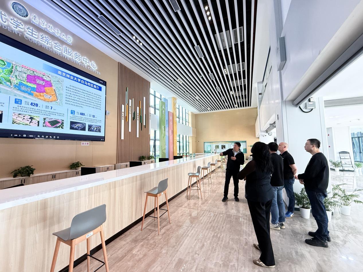 代表团先后参观了一站式服务大厅、校史馆、中国现代林业史料及银杏邮票展、林里汇、竹苑餐厅等场所。徐新洲围绕校区的办学定位、建设发展历程、功能区域布局及未来规划进行了全面介绍。代表团对学校深厚的文化底蕴以及校区优质的办学条件、特色鲜明的校园文化建设成果表示赞赏,希望通过此次访问进一步深化双方合作交流。