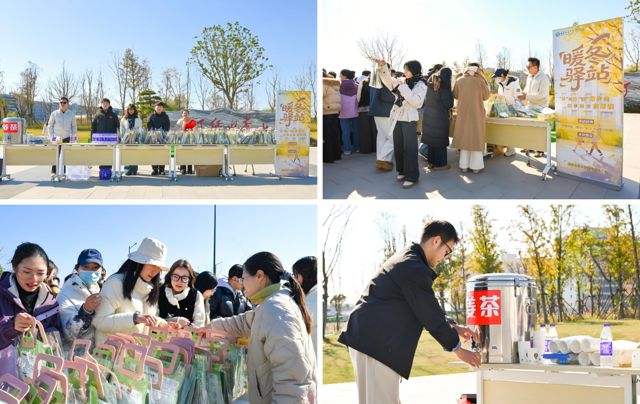 教职工们精神饱满,沿着规划路线有序出发。大家步履轻快而坚定,漫步翠竹路,穿行樱花南路,途经田径运动场,环绕波光粼粼的景观湖,踏过水杉挺拔的大道,历时半小时抵达“暖冬驿站”打卡点,校区工会精心准备了实用的暖冬礼包和贴心的姜茶热饮,为教职工们驱寒送暖。稍作休憩、补充能量后,大家满载活力踏上归途,整场健步走活动在轻松愉悦的氛围中圆满落幕。