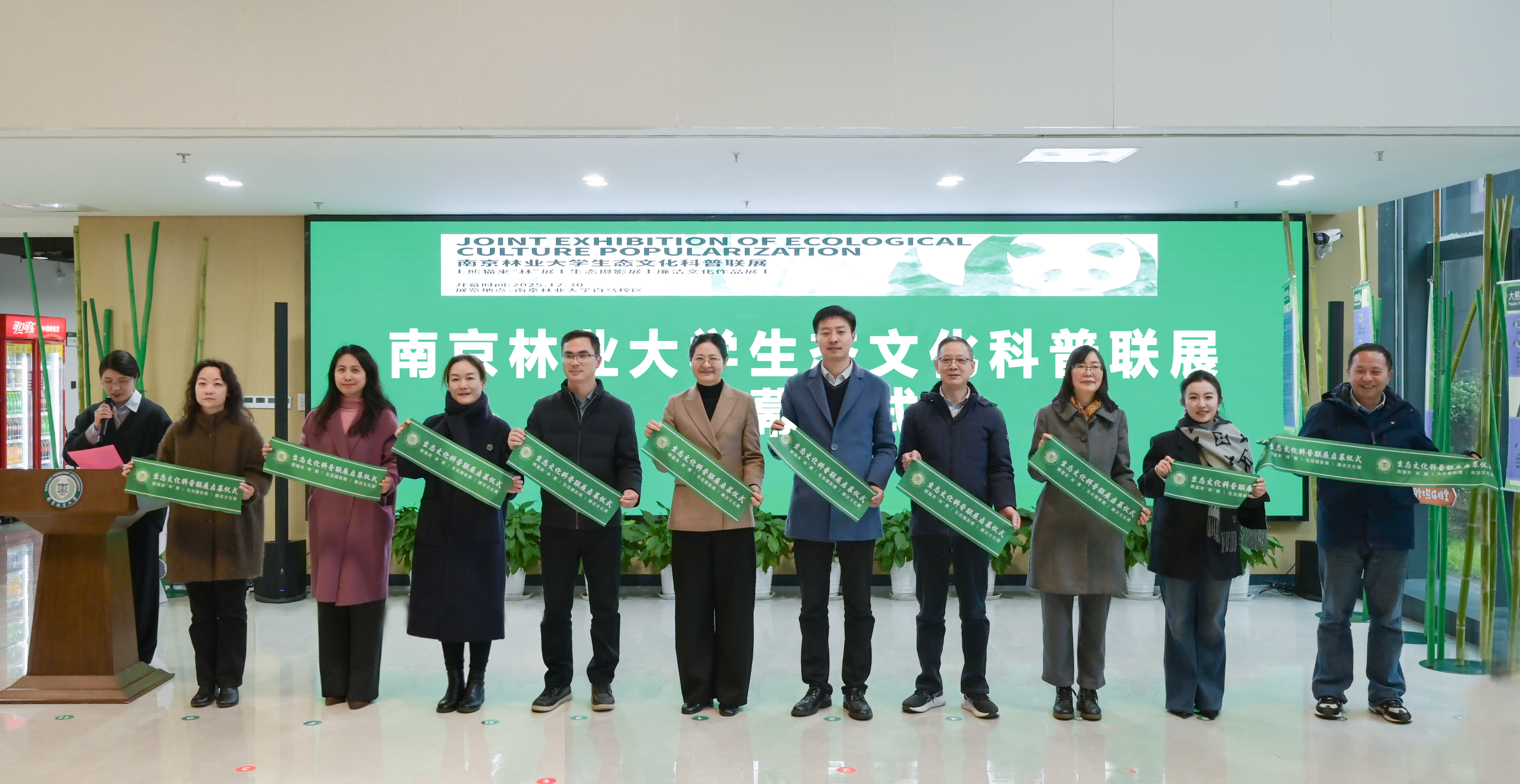 12月30日,南京林业大学生态文化科普联展暨第二届“熊猫来‘林’科普展”“生态摄影展”“廉洁文化作品展”联合启幕仪式在白马校区举行。副校长张晓琴,溧水区政府副区长谭智贇,南京国家农高区科技创新部部长张锦辉等出席活动。校纪委、人文社会科学学院、艺术设计学院、家居与工业设计学院、生态与环境学院、生命科学学院、白马校区相关负责人以及江苏省生态学会、白马校区和白马小学师生代表共同参加活动。