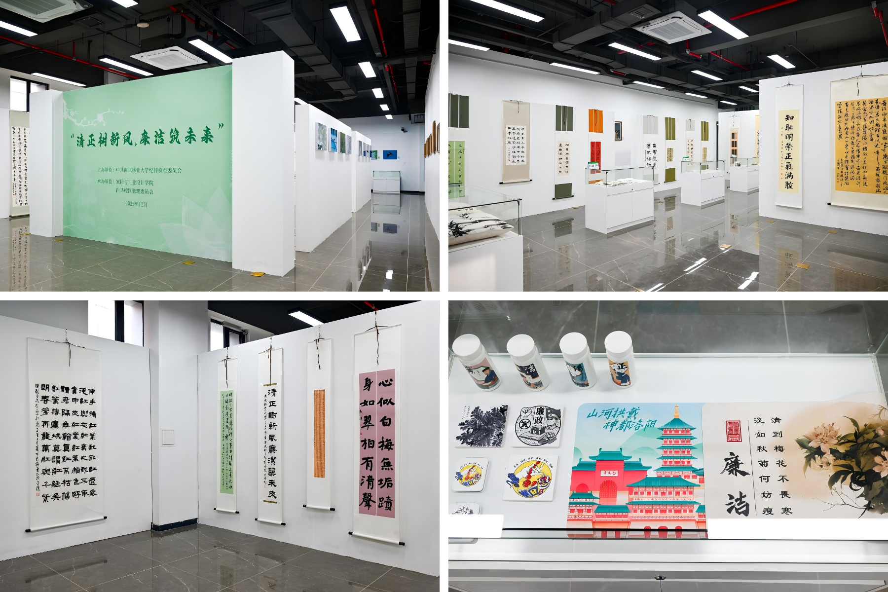 “廉洁文化作品展”以“清正树新风,廉洁筑未来”为主题,将廉洁元素与专业设计巧妙融合,汇集了书法、画作等多种形式的师生原创作品。展览通过把廉洁文化充分融入思政课堂、专业教育和实践教学,引导师生在艺术创作中感悟清廉品格,营造风清气正的校园文化氛围。