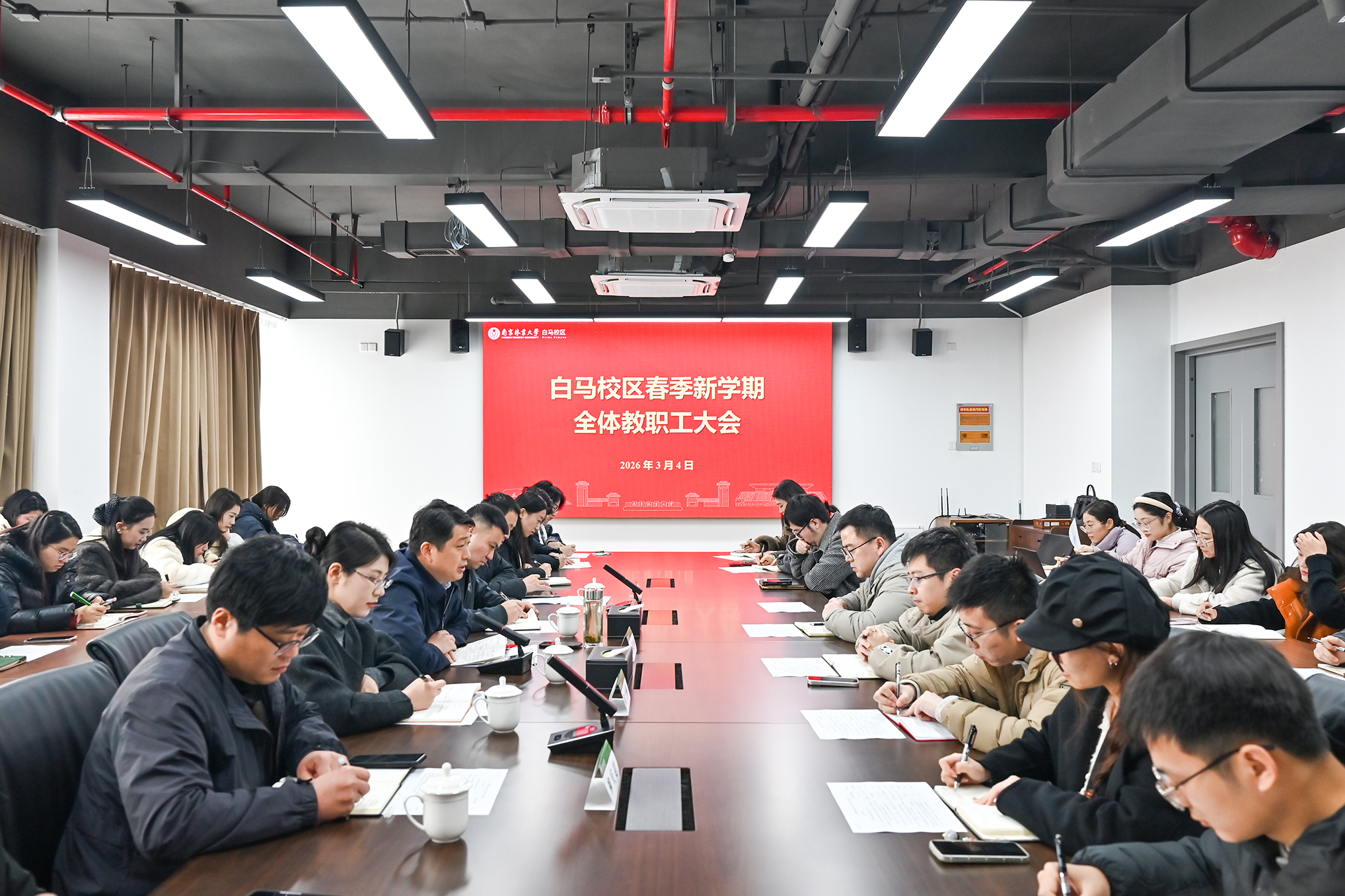 会议传达学习了学校第九届教代会、第十八届工代会第三次会议暨新学期中层干部大会精神以及学校2026年工作要点。重点传达了校党委书记赵茂程、校长勇强对白马校区2026年运行管理工作指示和要求。会议强调,2026年是学校“十五五”规划的开局之年,也是白马校区实现扩容创优、提质增效的关键一年。校区全体教职工要进一步统一思想、凝聚共识、埋头苦干,紧扣学校“一校三区”发展战略布局,结合白马校区运行管理实际,系统谋划2026年校区工作目标与重点任务,确保“十五五”起步稳健、开局有力。