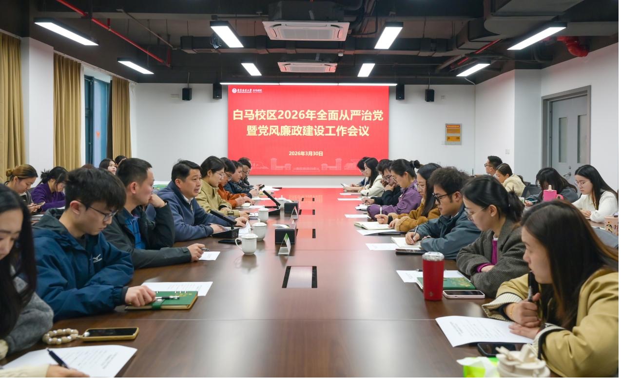 为深入贯彻落实校党委全面从严治党部署要求,进一步压紧压实管党治党政治责任,3月30日下午,白马校区2026年全面从严治党暨党风廉政建设工作会议在3号楼第一会议室召开。校区处科级领导干部、一室三部教职工参加会议。会议由白马校区党政办公室主任陈汝雅主持。