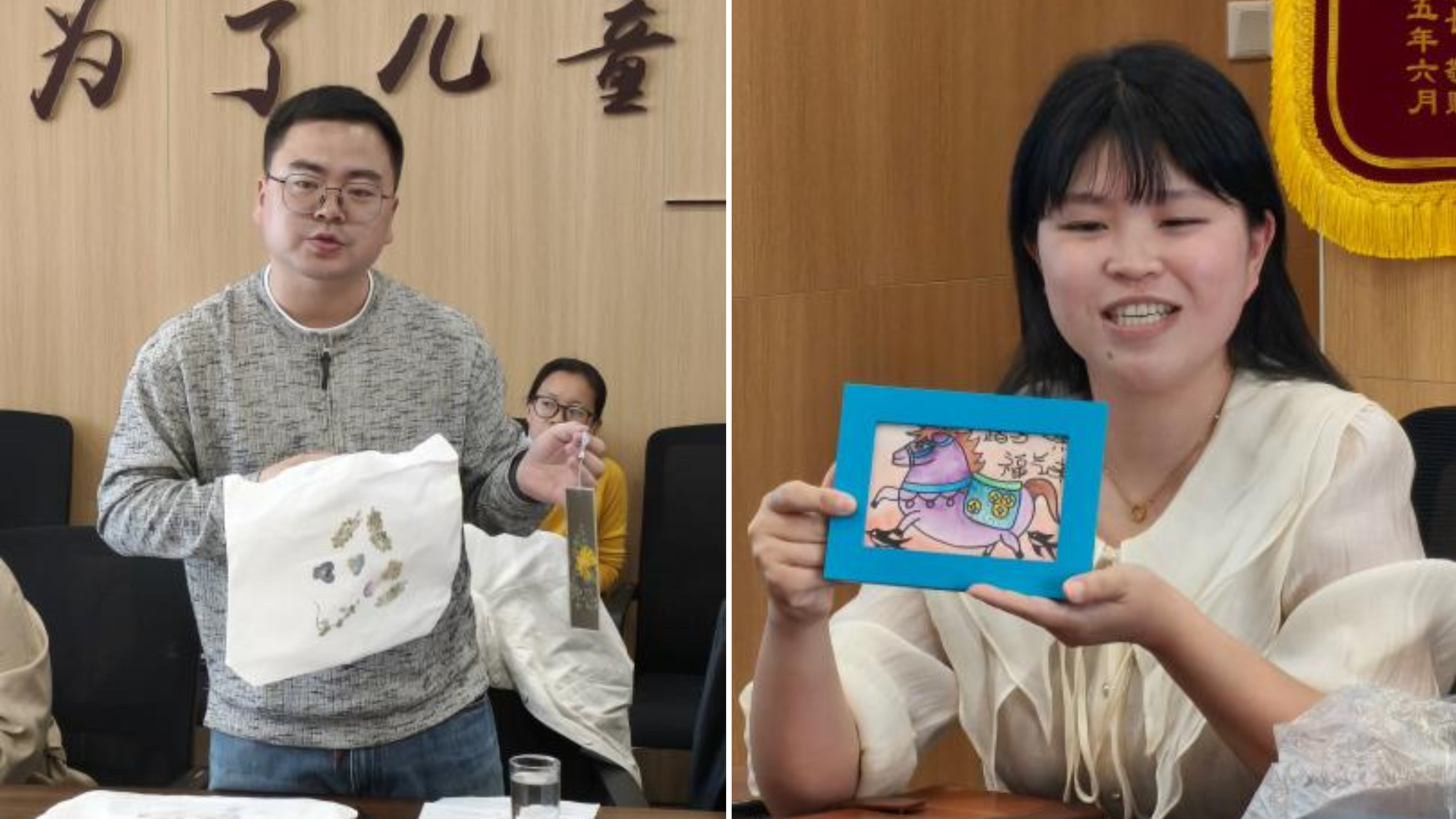 活动尾声,幼儿园教师代表向南林大师生赠送幼儿手工作品,校区教师也以植物拓印帆布包等暖心回赠。双方还就后续植物科普、种植养护指导、自然课程共建等长期合作达成共识。