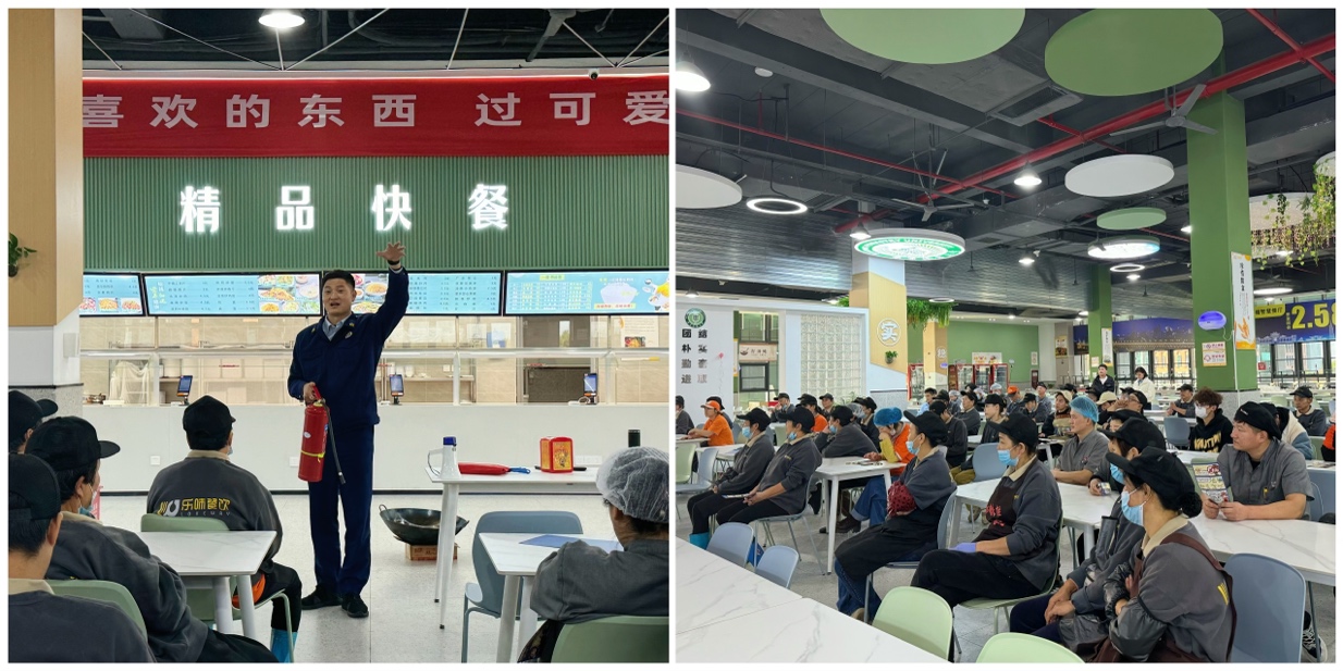 食堂是校园防火重点部位,为进一步落实食堂火灾防控工作,提升工作人员防火安全意识,增强自防自救能力,白马校区饮食管理中心于11月6日下午邀请溧水区消防救援大队宣传讲师韩建祥进行消防安全培训,并组织员工开展消防应急演练。