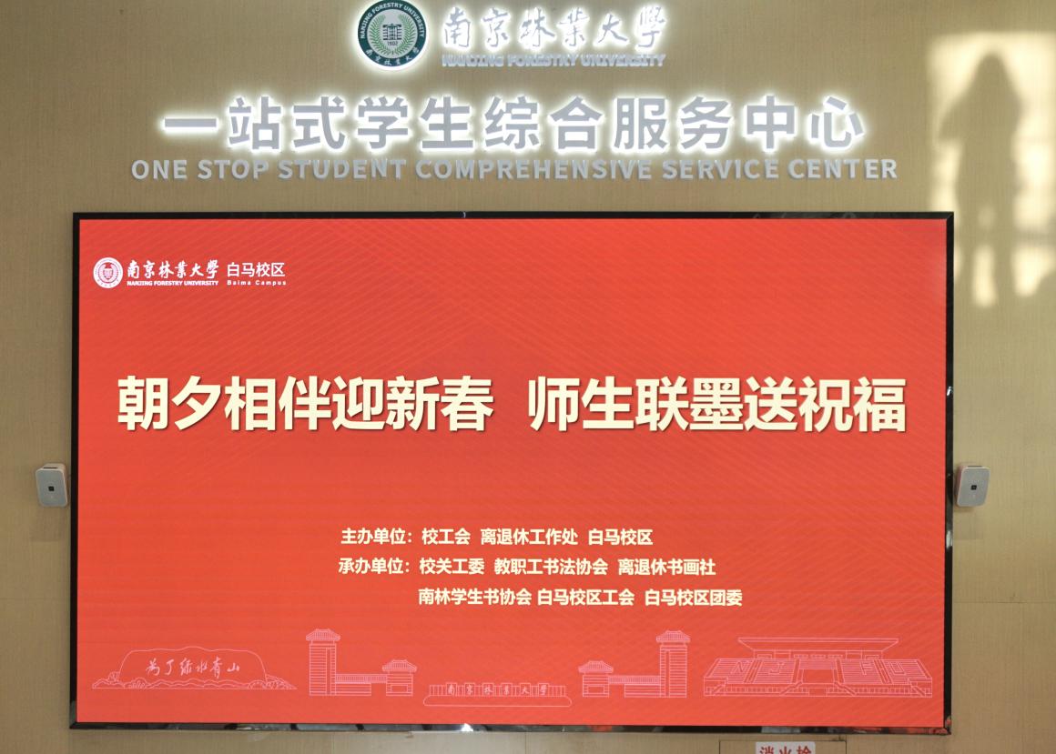 为喜迎新春、共贺佳节,丰富师生精神文化生活,体现离退休教职工关心关爱学生成长,12月30日,由白马校区、校工会、离退休工作处主办,校关工委、教职工书法协会、离退休书画社、南林学生书协、白马校区工会、校区团委联合承办的“‘朝夕’相伴迎新春,师生联墨送祝福”活动,在3号楼一站式服务大厅举行,校关工委常务副主任赵林带队参加。