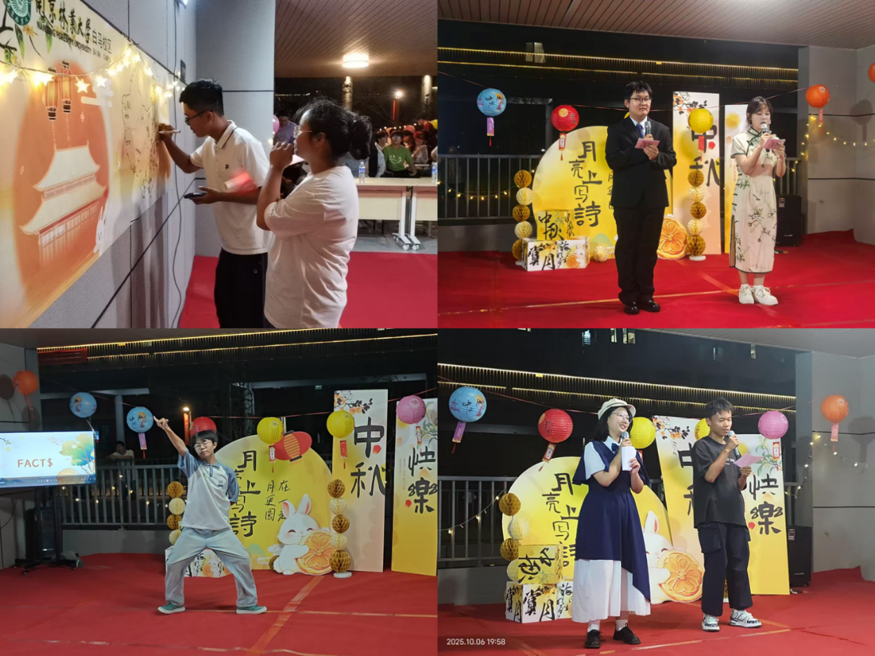 今年精心设计的"月饼蹲"游戏将传统节日元素与现代团辅形式巧妙结合,同学们化身各种口味的"月饼",在欢声笑语中拉近了彼此距离。随后的"飞花令"环节更是精彩纷呈,同学们以"月""秋"为关键词,对出数十句经典诗词,展现了南林学子深厚的文化底蕴。