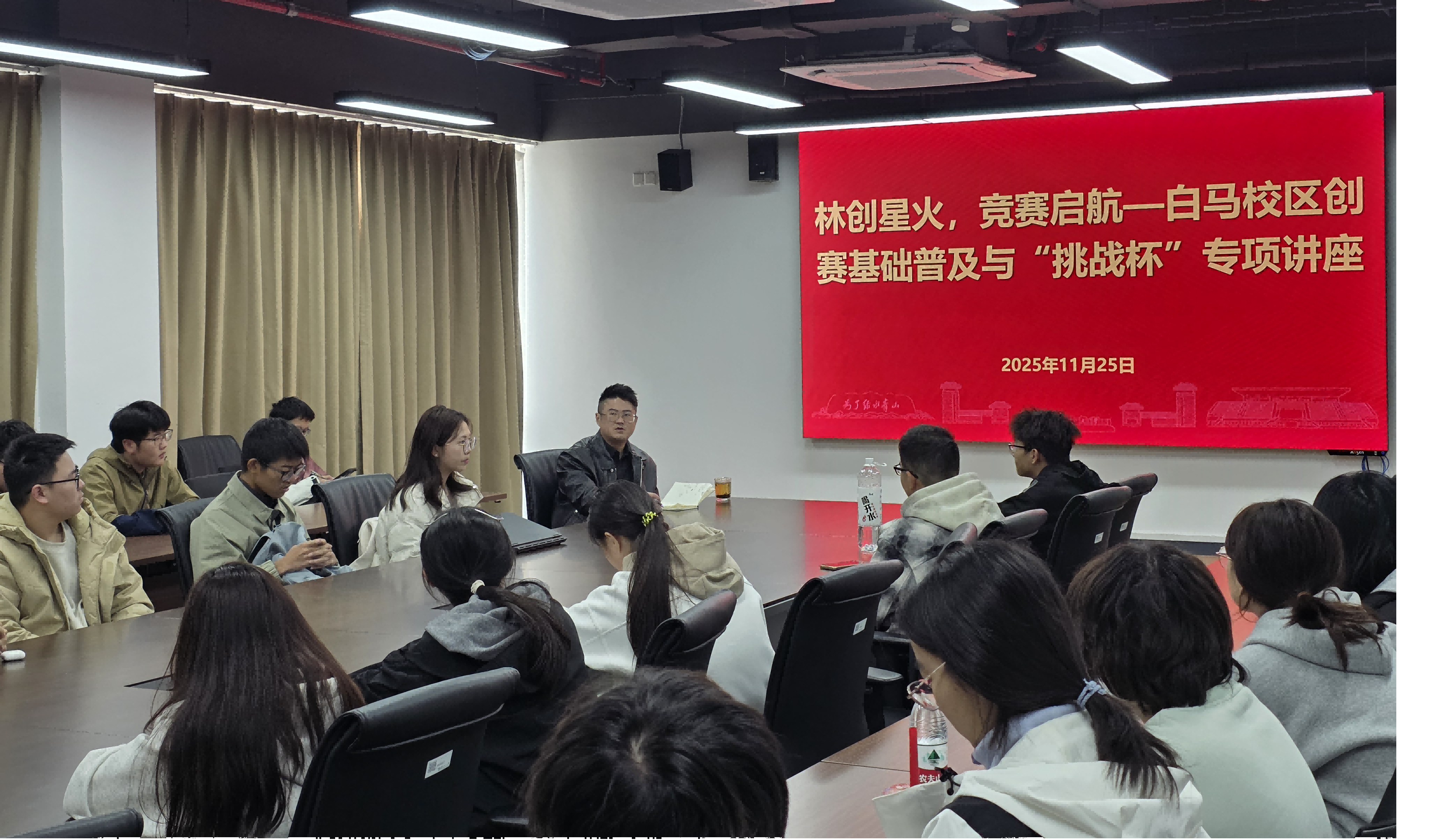 11月25日下午,白马校区在第一会议室举办创赛基础普及与“挑战杯”专题讲座。校区学生工作部副部长、团委书记肖肖,校区团委老师赵刘萍,土木工程学院辅导员许历隆参加活动。50余名大一学生参加学习。