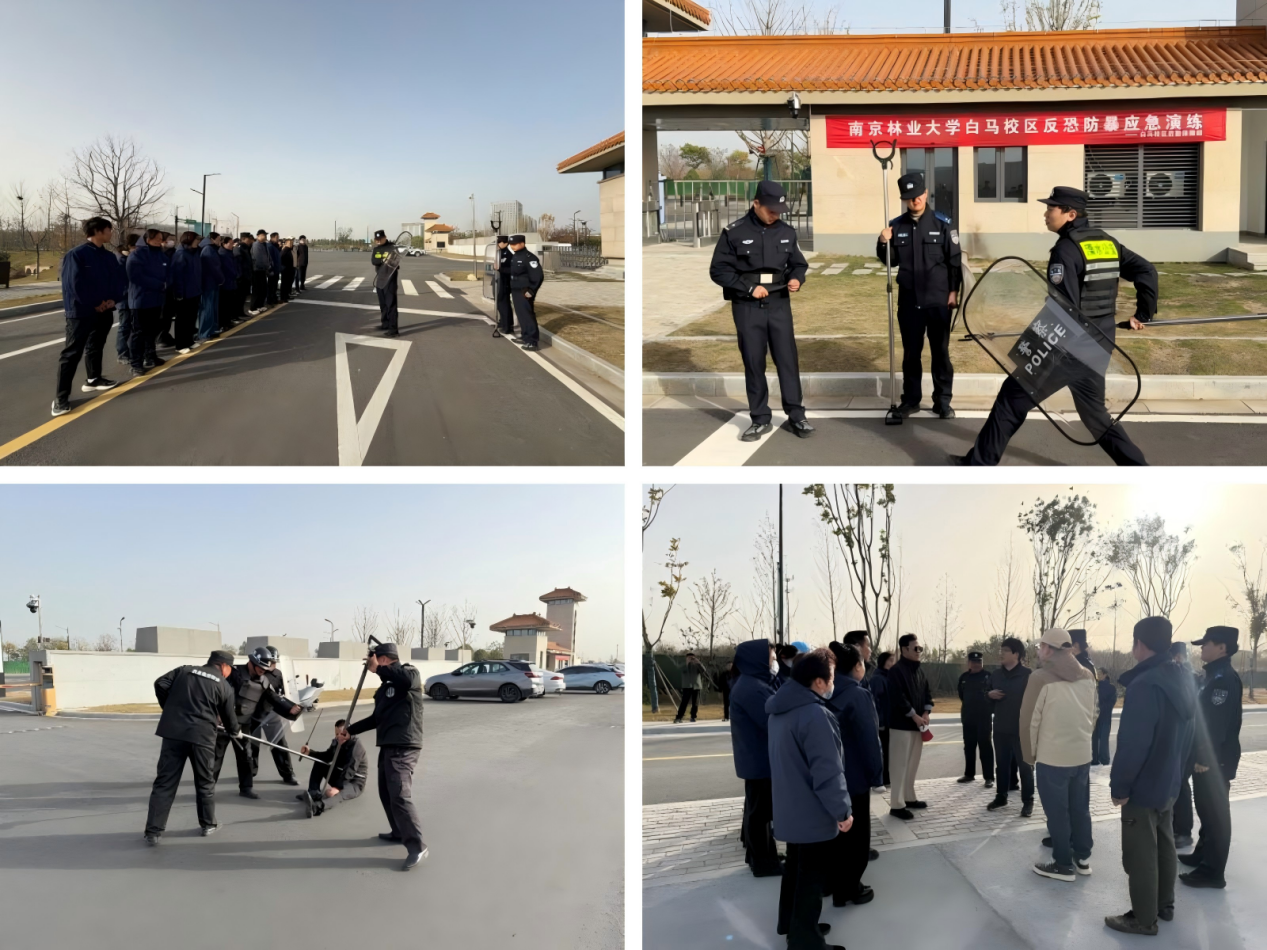 11月27日下午,白马校区后勤保障部联合白马镇派出所,共同组织开展反恐防暴综合演练。校区全体安保人员参加演练。