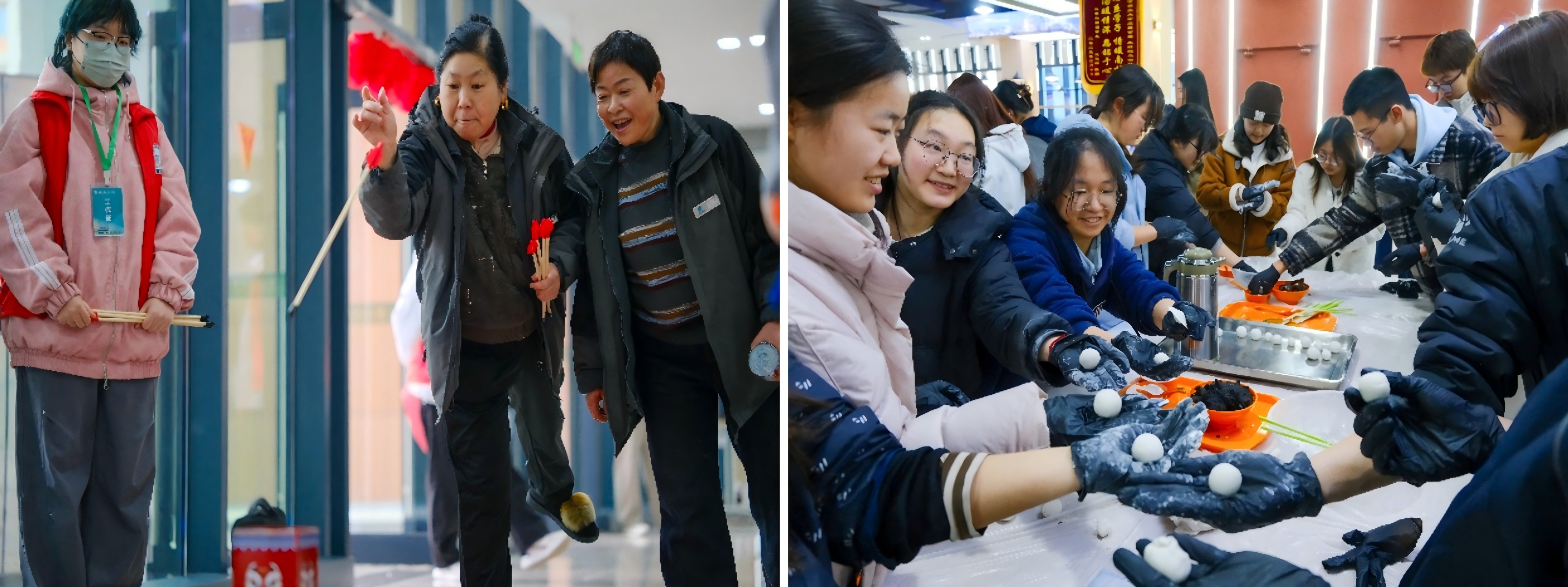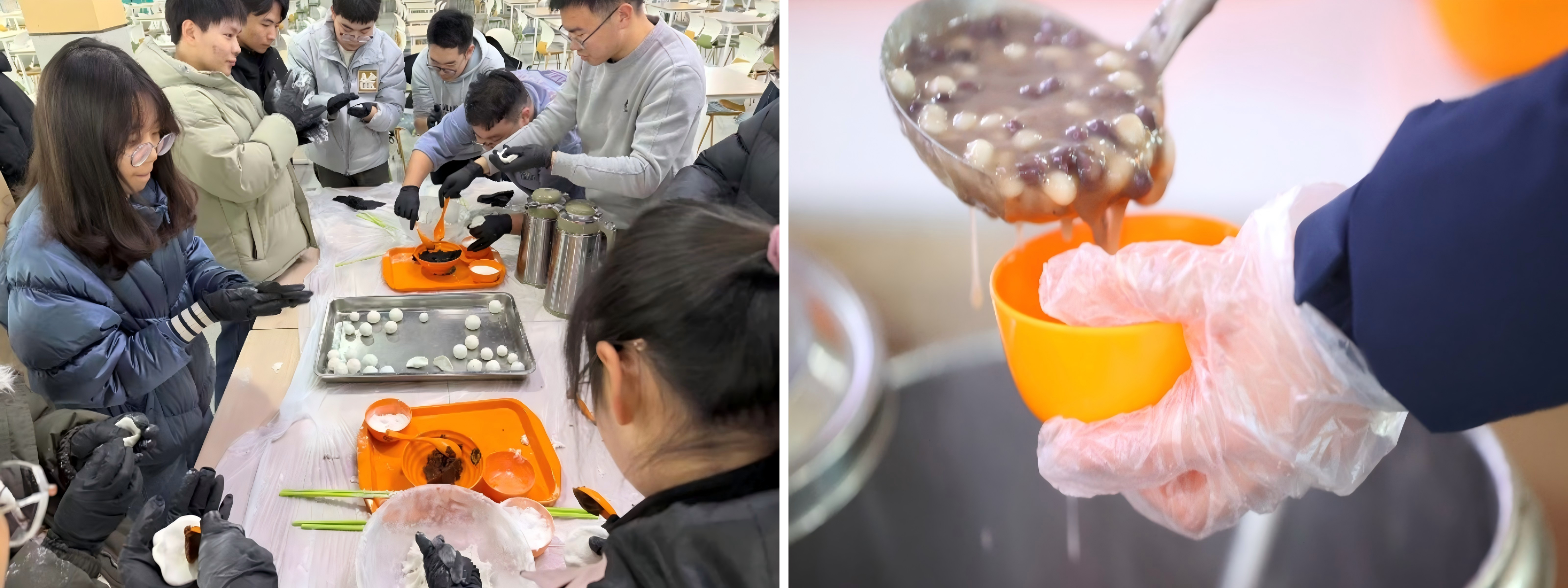 活动亮点环节“包汤圆”体验在食堂三楼展开。同学们在食堂工作人员的指导下,亲手揉面、包馅、搓圆,体验传统节令食品的制作过程。现场气氛融洽,南北学子交流制作心得,分享家乡习俗,在劳动中增进情谊,在实践中体悟传统文化。汤圆出锅后,大家共同品尝劳动成果,甜在嘴里,暖在心头。此外,校区向所有元宵节当天来校授课的老师们发放了汤圆券,向全体学子供应免费小元宵。一碗汤圆,包裹着对全体师生的温情和祝愿。